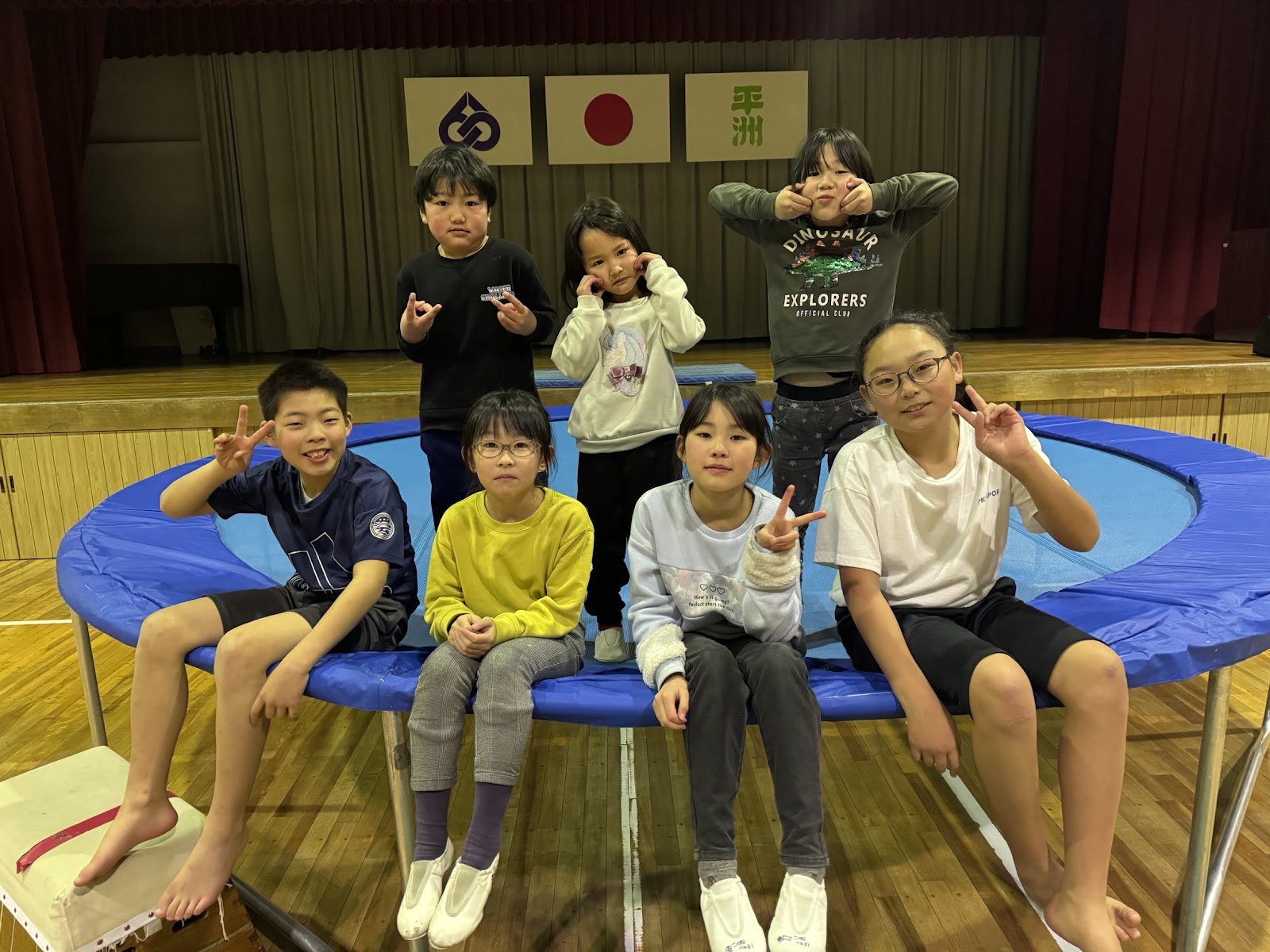 私たち平洲体操クラブでは、特大トランポリンが自慢です!このトランポリンでは様々な技やアクロバットな技を練習し、運動能力の向上だけでなく、自信を育み新たな事に挑戦する心も培っていきます。また、仲間と一緒に練習することで、チームワークや友情も体感できます。その他にも体を動かす運動をしながら、心と身体の成長を目指してみませんか??