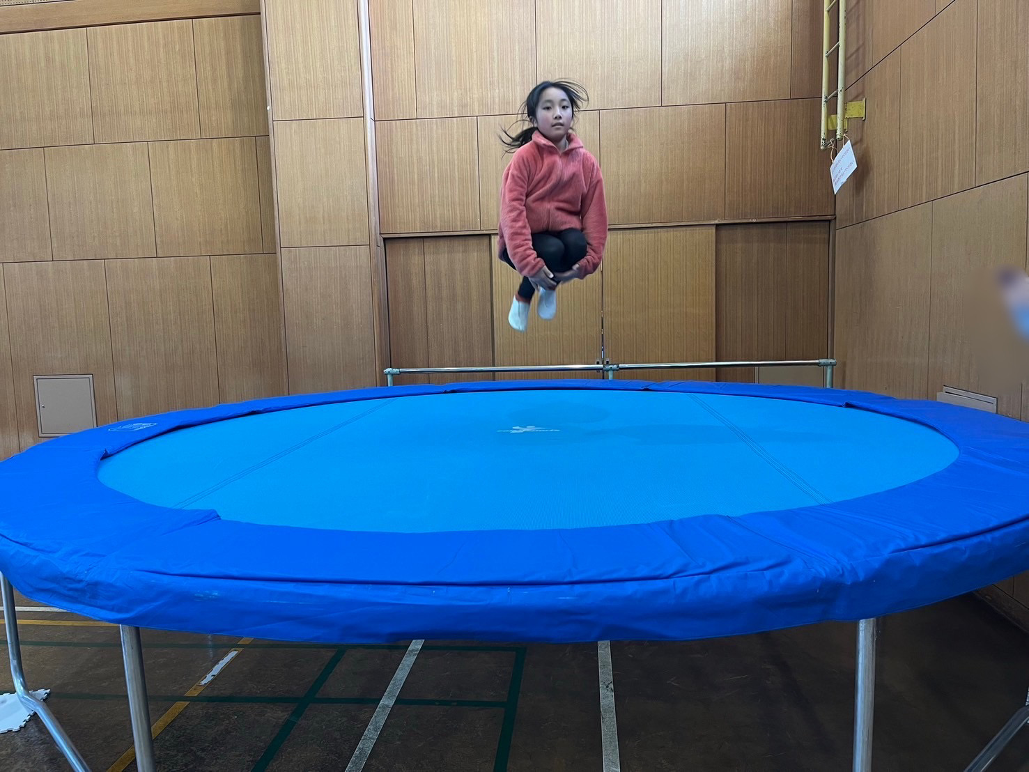 “わたしたちの体操クラブでは、なかなか体験できることのないトランポリンが魅力となっております!運動が苦手なお子さんでもトランポリンを跳ぶことで運動が大好きになること間違いなし♩