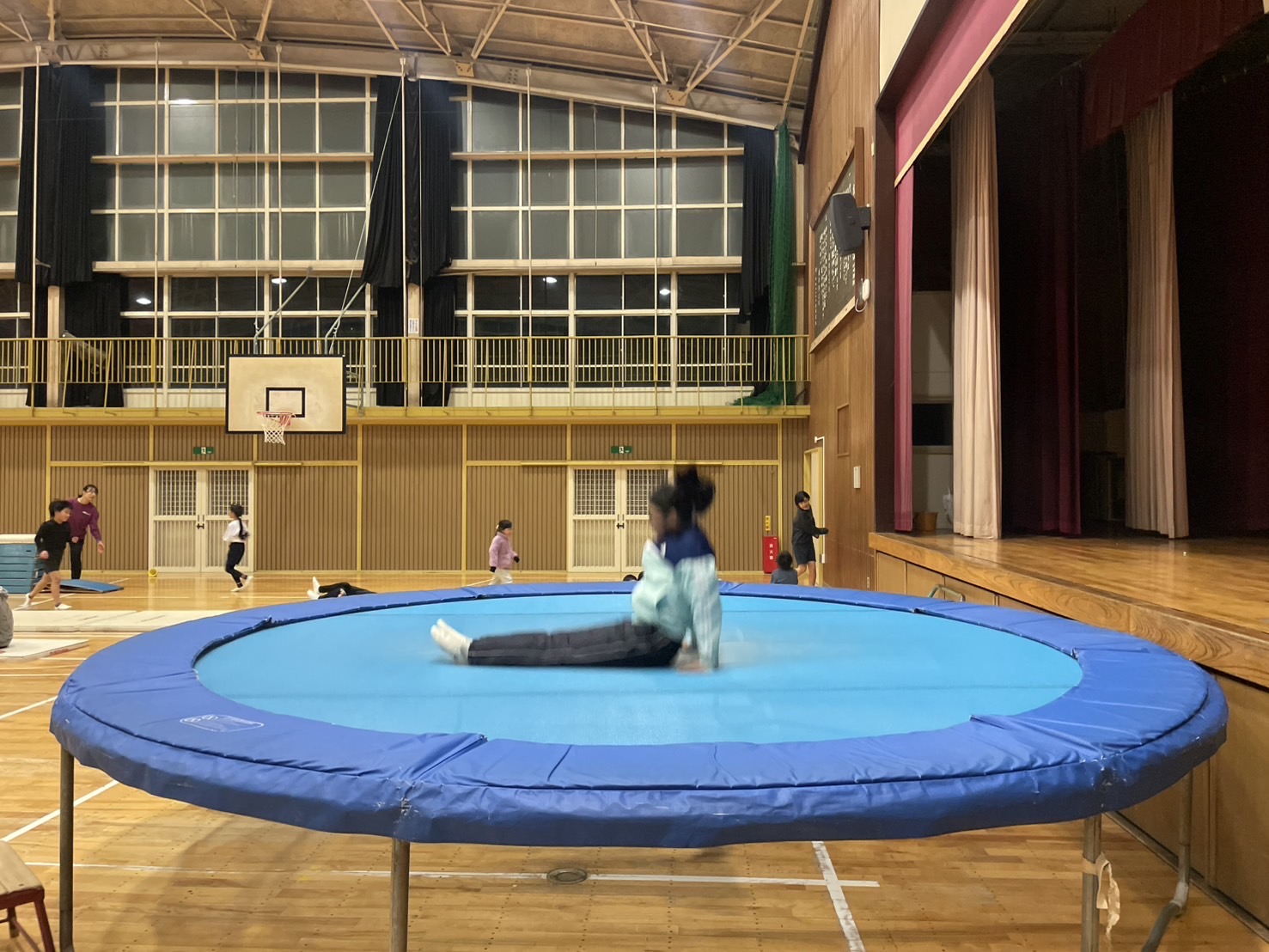 岐阜県土岐市泉小学校体育館で行っている体操クラブです!最大の魅力は、直径4mの大型トランポリン🤸♂️✨️トランポリンは全身運動なので、バランス良く全身の筋力を鍛えることができます。また、運動が得意な子はアクロバットな技、バク転や宙返りなどにも挑戦しています🔥子どもたち一人一人に向き合い、日々練習しています❗️週に一回楽しく運動しませんか?👣