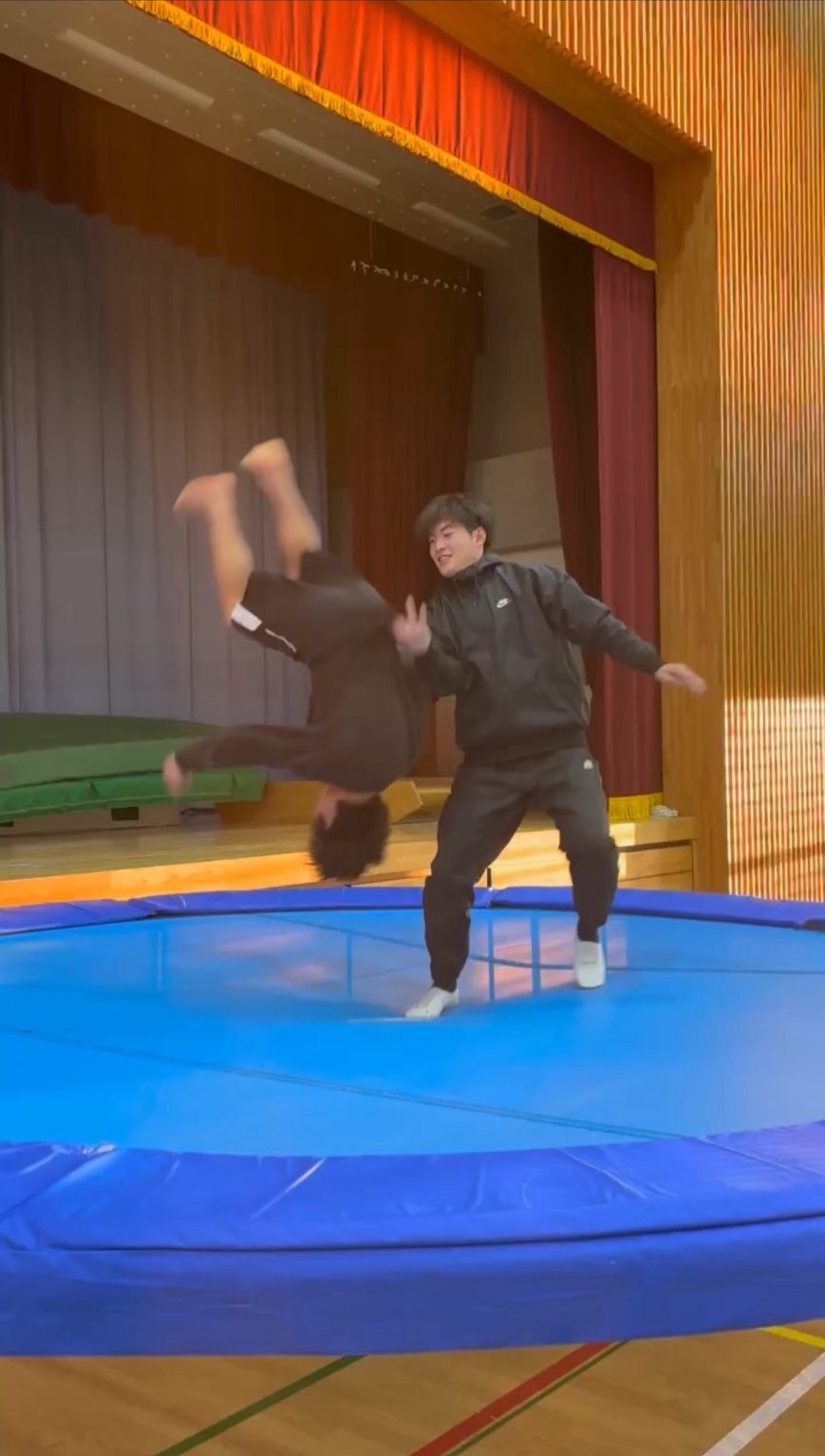 4メートルの大型トランポリンを使って練習しており、楽しく運動を行いバランス良く全身鍛えることもできます!