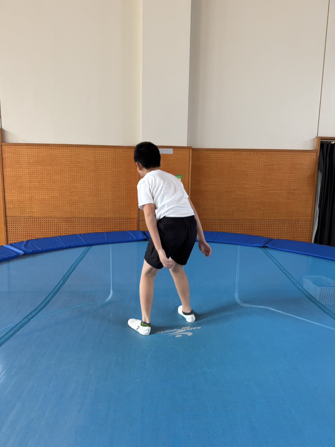 トランポリン、跳び箱、鉄棒、マットの練習を行ってます。