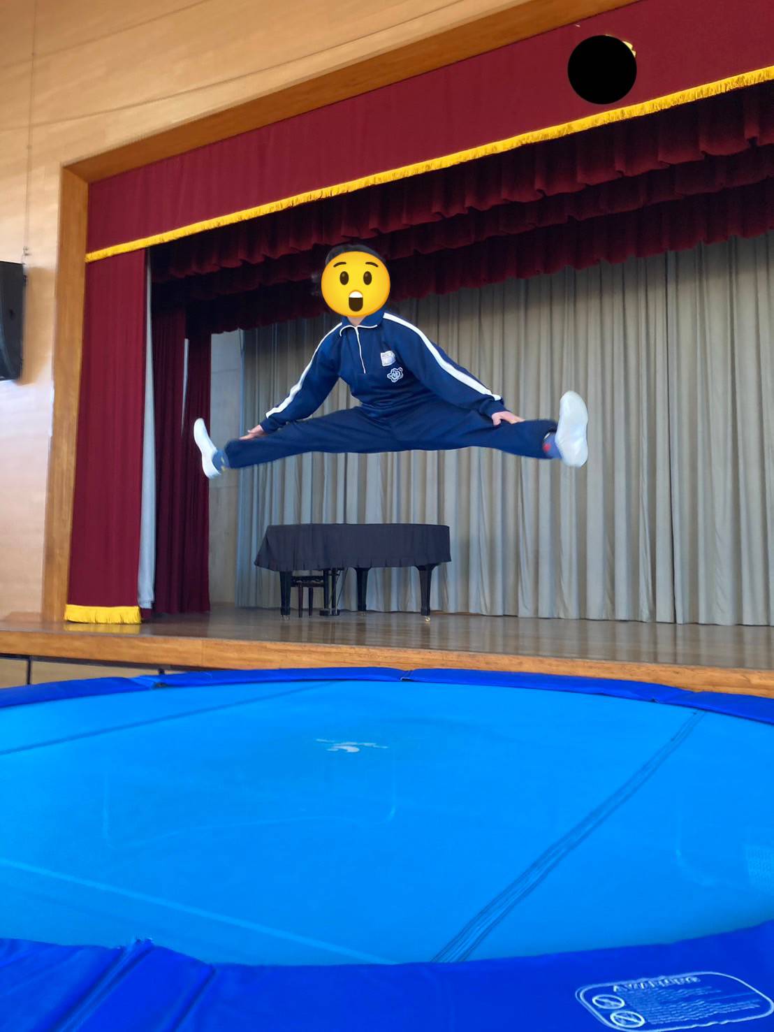 上中妻体操クラブでは直径4mにもなる大きなトランポリンを設置し練習を行っています!