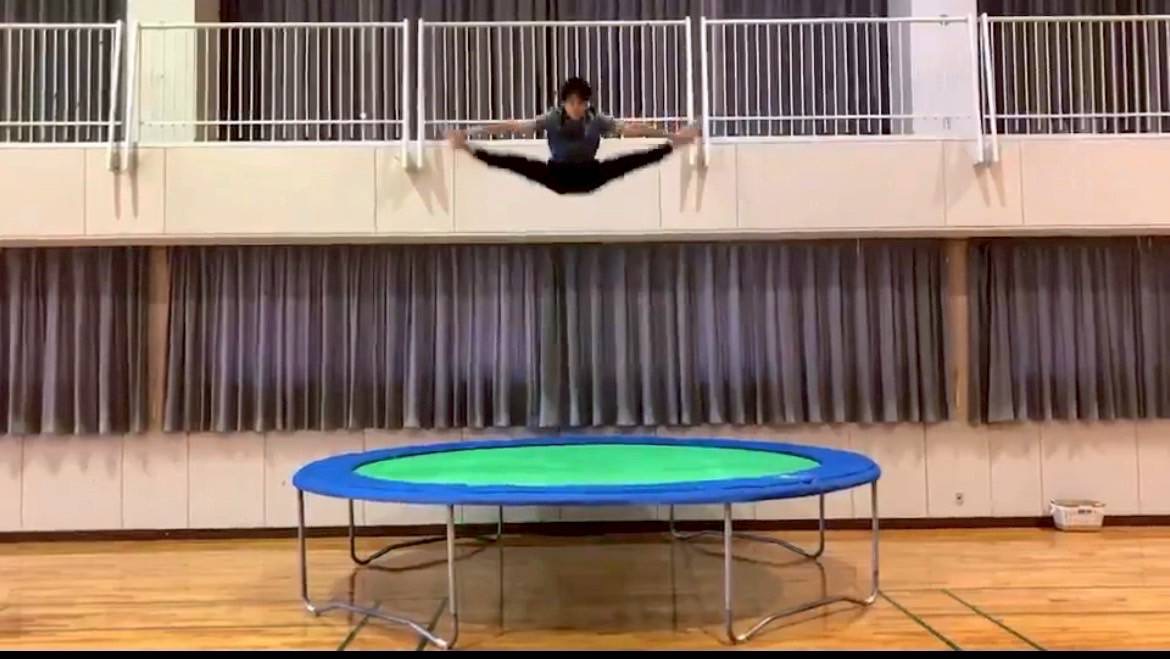 大きなトランポリンを使って、簡単な技から難しいバク転まで色々な技にチャレンジしています!