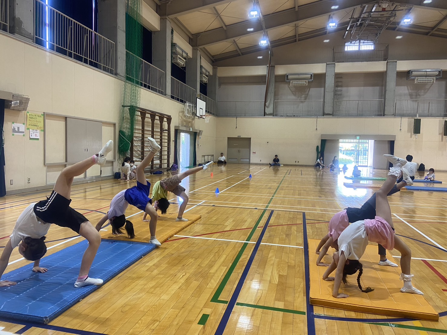 体操の基礎的な技から、バク転や宙返りなど難しい技にチャレンジしているお子さまもいます!