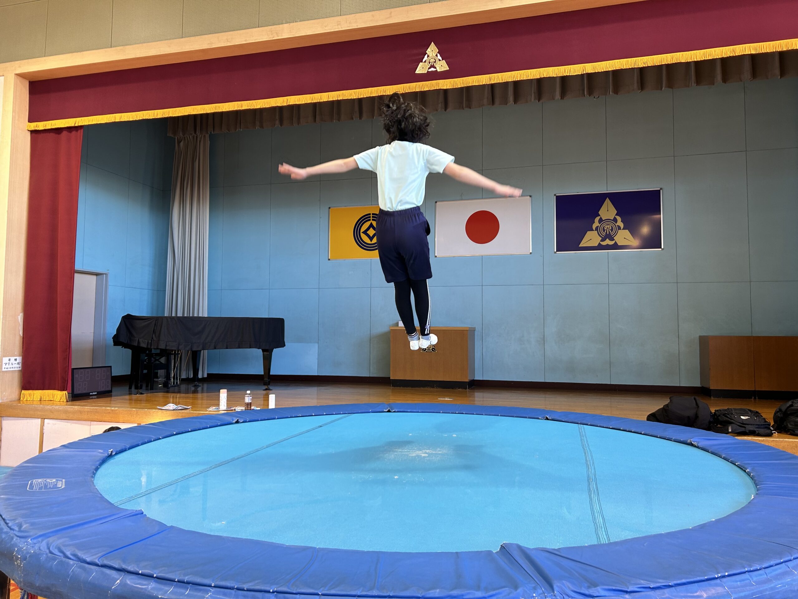 芝西体操クラブは元気な子どもたちと4メートルのトランポリンを使って楽しく活動しています!