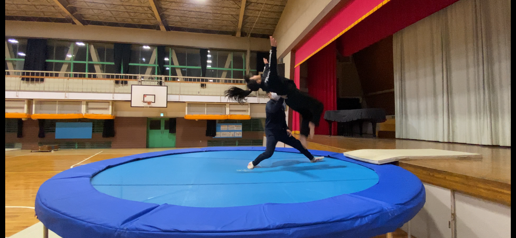 お子様の中では、バク転やハンドスプリング、側転などのアクロバットな技から前転や後転などの基本的な技まで様々な技を練習しております。