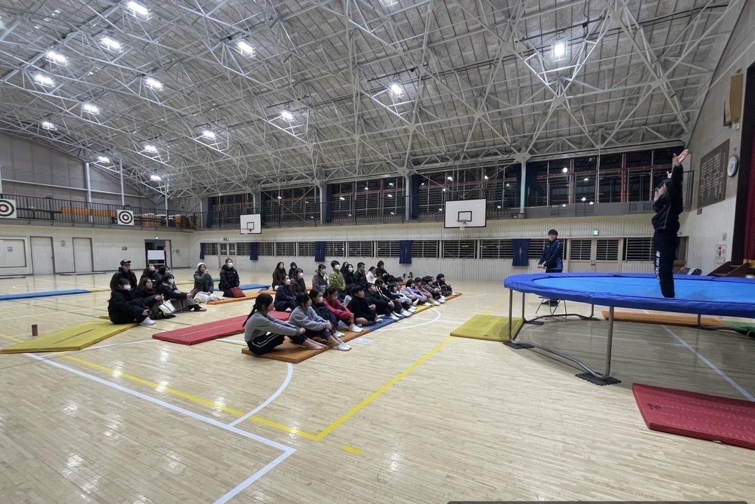 当体操クラブのトランポリンの魅力は、体幹を鍛えバランス感覚を向上することが出来ます。また、4mのトランポリンを使用して身体を動かす事の楽しさを知っていただきたいと考えております。