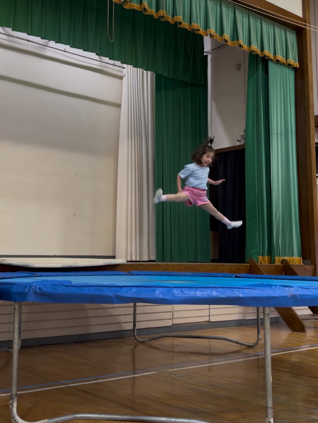 トランポリンは飛ぶだけで楽しいですが、簡単な技からバク転などのアクロバットの技まであり、たくさんの技が練習できます🤩👌