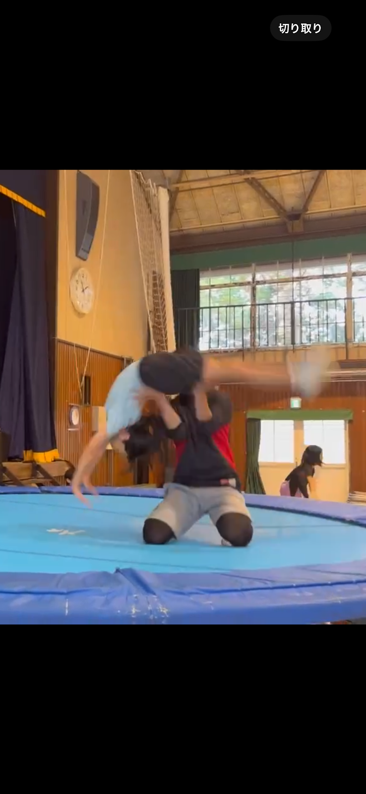 4メートルの大きなトランポリンを使っているところが魅力の一つです。トランポリンで様々な技やアクロバットにも挑戦することできます!