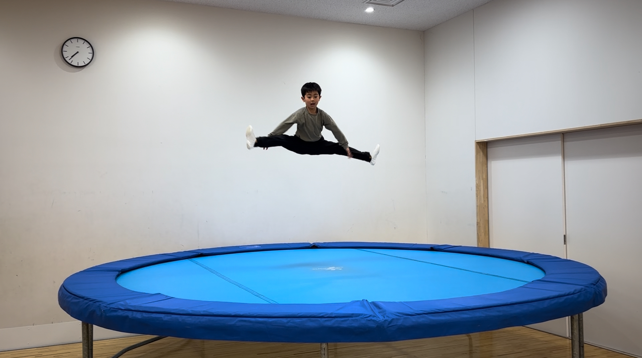 トランポリンは飛ぶだけで楽しいですが、簡単な技からバク転などのアクロバットの技まであり、たくさんの技が練習できます🤩👌